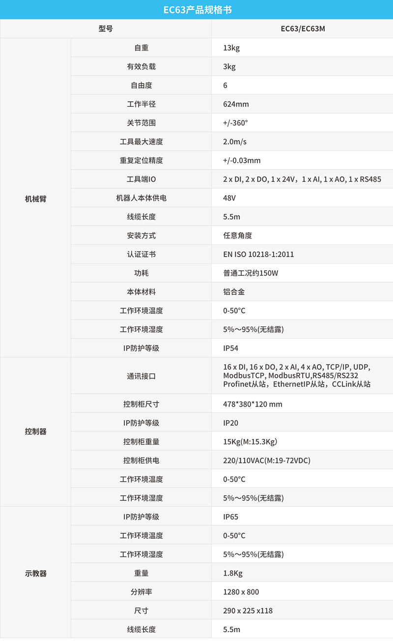 輕便:輕便靈活的協(xié)作機(jī)器人,自重更輕、負(fù)載更強(qiáng),自重僅13kg,負(fù)載達(dá)3kg