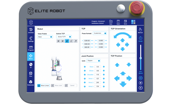 艾利特CS系列協(xié)作機(jī)器人采用新型的輕量寬屏示教器,用戶界面經(jīng)過重新設(shè)計,操作直觀,支持觸屏控制。基于對用戶使用習(xí)慣的理解,艾利特優(yōu)化了編程流程,并簡化了編程步驟,只需在示教器上點(diǎn)擊幾下,便可完成編程,從而減輕用戶學(xué)習(xí)負(fù)擔(dān),上手更快速,幫助用戶和集成商加快項(xiàng)目開發(fā)周期。用戶能充分體驗(yàn)到CS系列簡約現(xiàn)代的外觀,以及工具欄中醒目而直觀的圖標(biāo),導(dǎo)航更方便,使用更流暢。