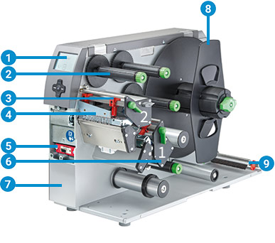 兩組并列的熱轉(zhuǎn)印打印頭可同時(shí)打印兩種顏色于同一標(biāo)簽。