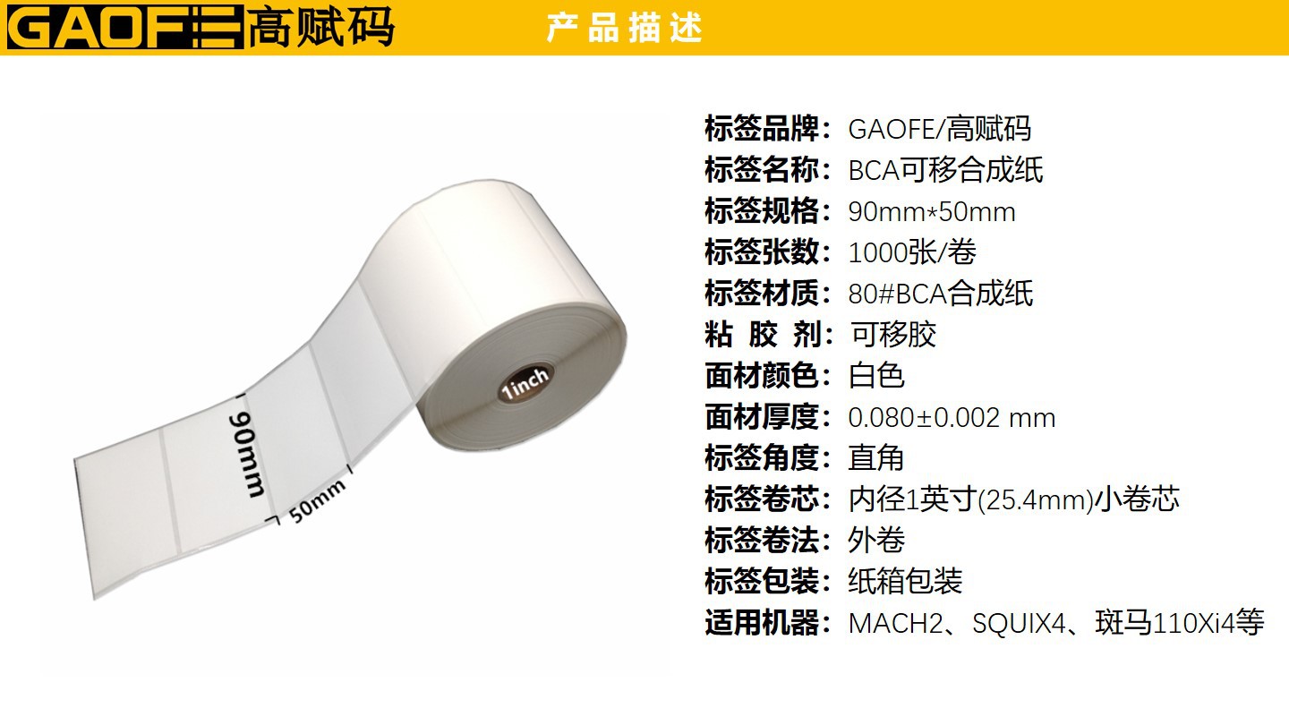 可移合成紙 可多次使用標簽 90mm*50mm PP標簽紙 防水防油-高賦碼