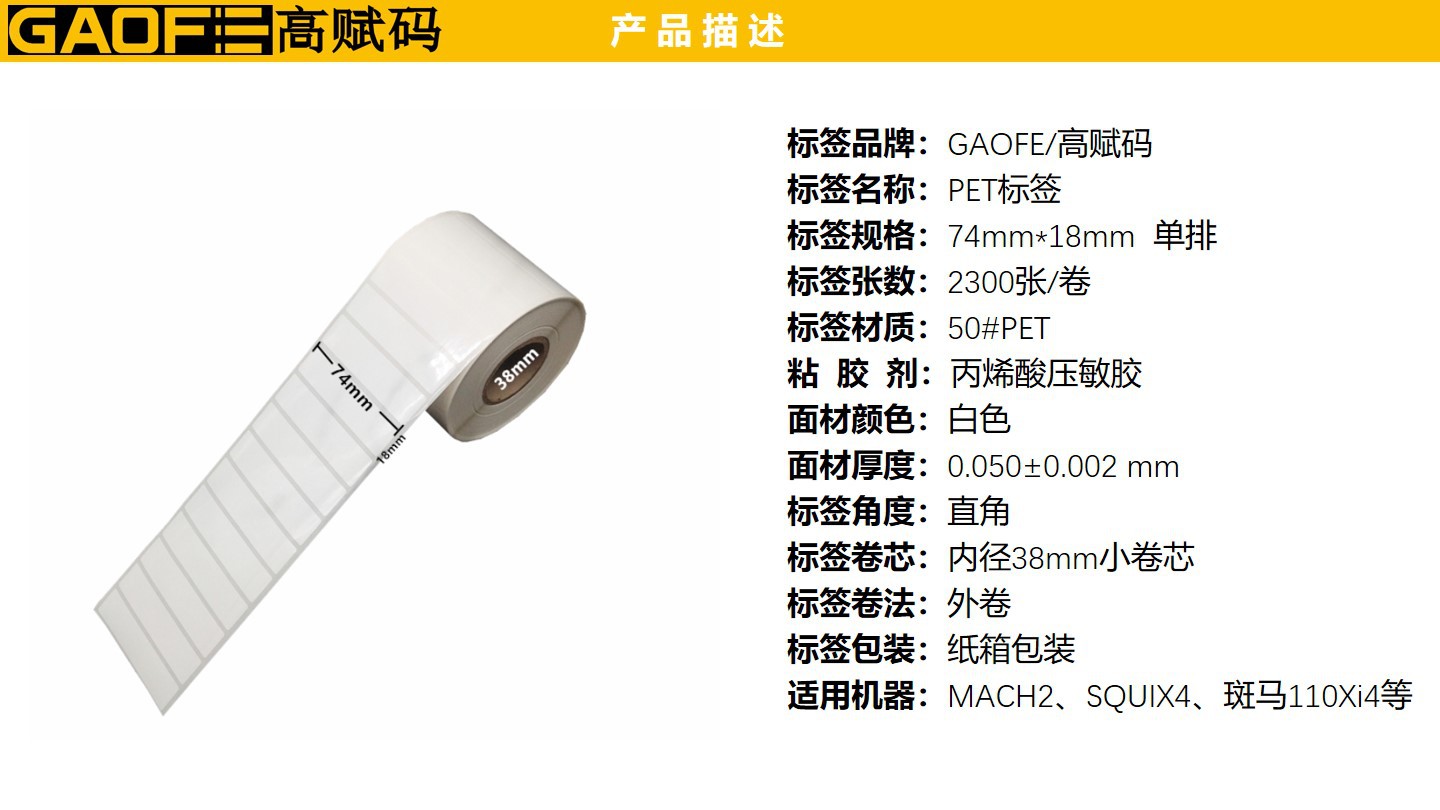 電子標簽 撕不爛標簽 74mm*18mm PET標簽 白色防水標簽-高賦碼