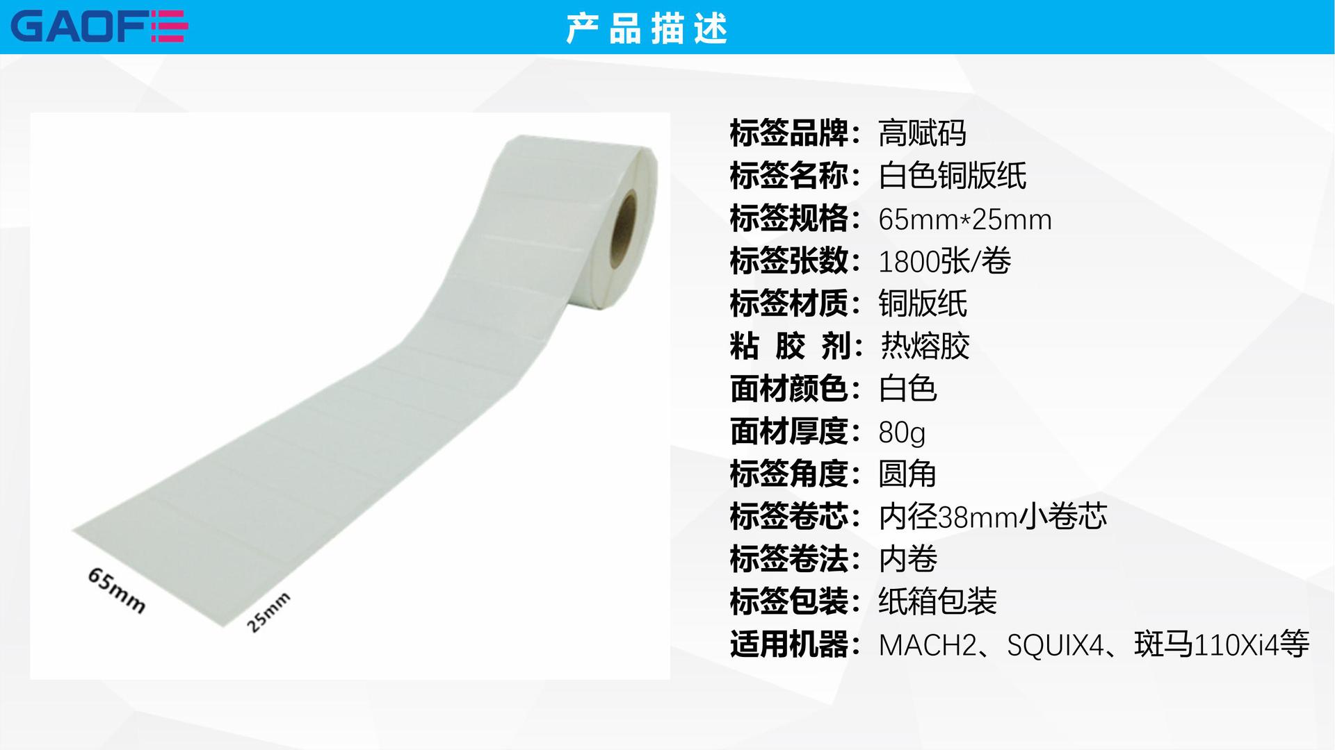 空白標(biāo)簽 65mm*25mm 不干膠銅版紙 易碎銅版紙 出貨標(biāo)簽紙 高賦碼
