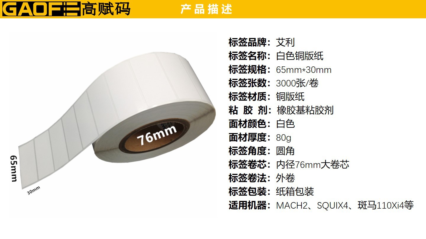 5209不干膠銅版紙 65mm*30mm 強(qiáng)粘性標(biāo)簽 出貨銅版紙標(biāo)簽-高賦碼