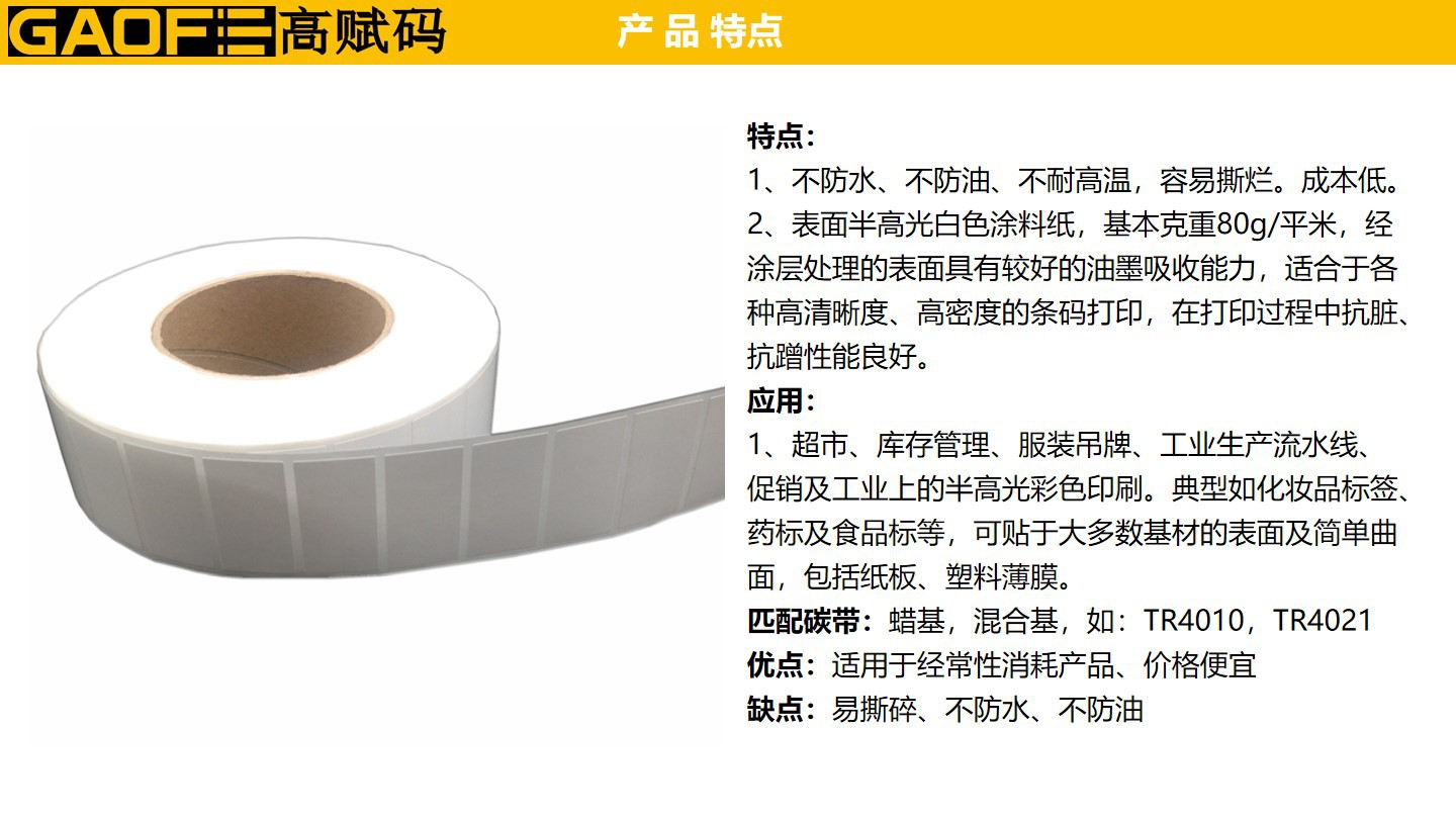 條碼標(biāo)簽 強(qiáng)粘性標(biāo)簽 5209銅版紙 40mm*22mm 出貨紙標(biāo)簽-高賦碼