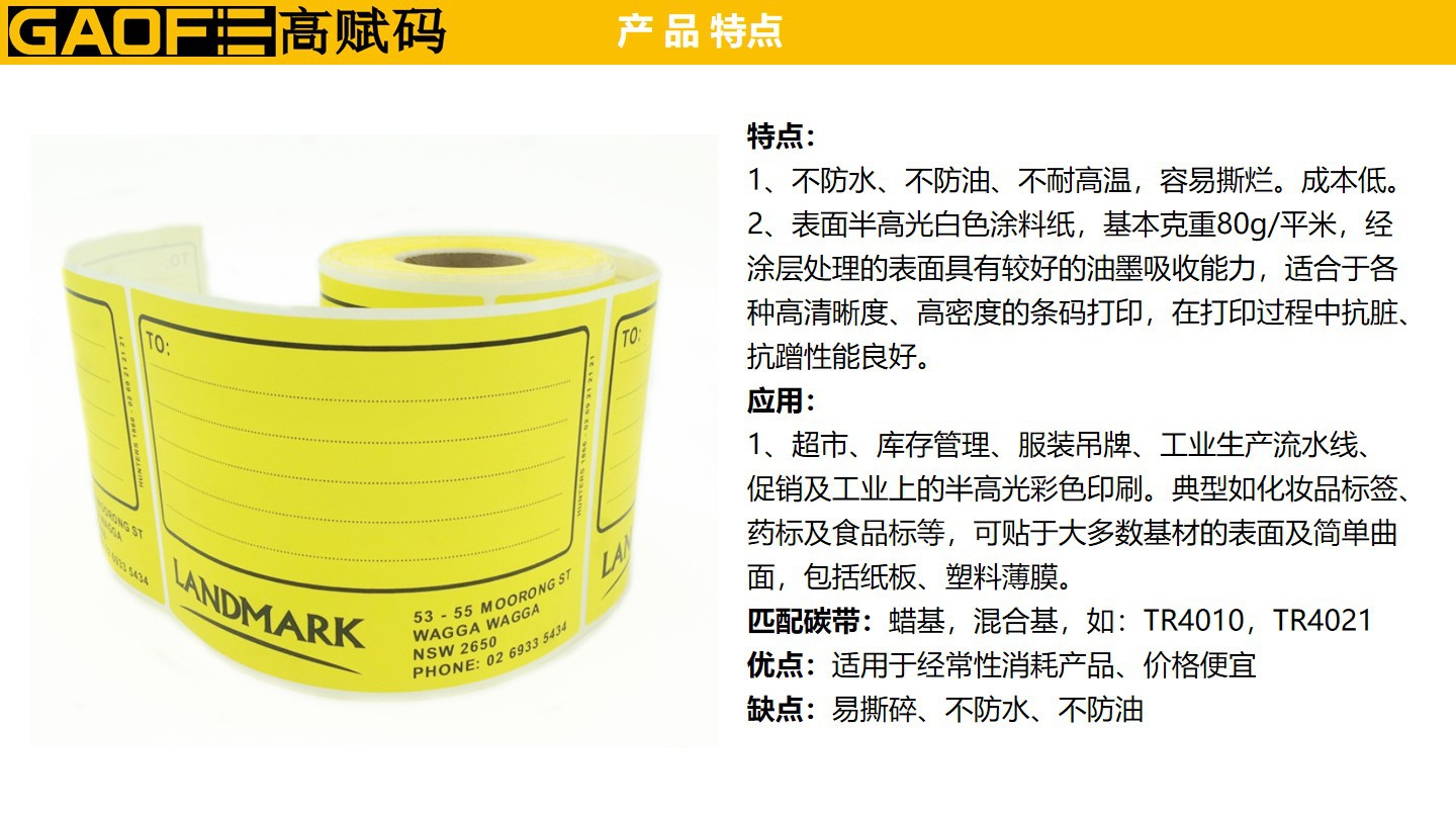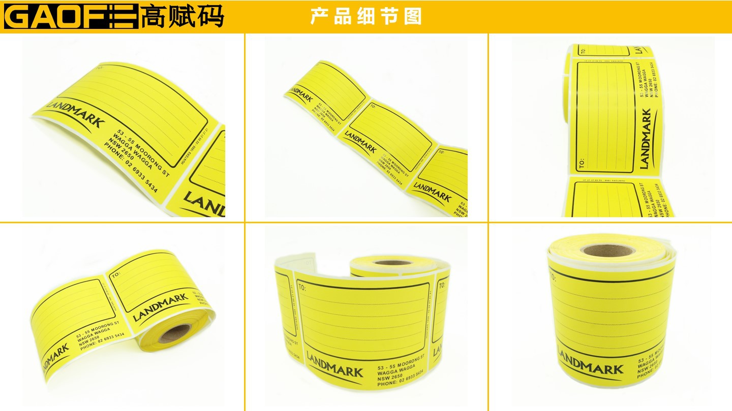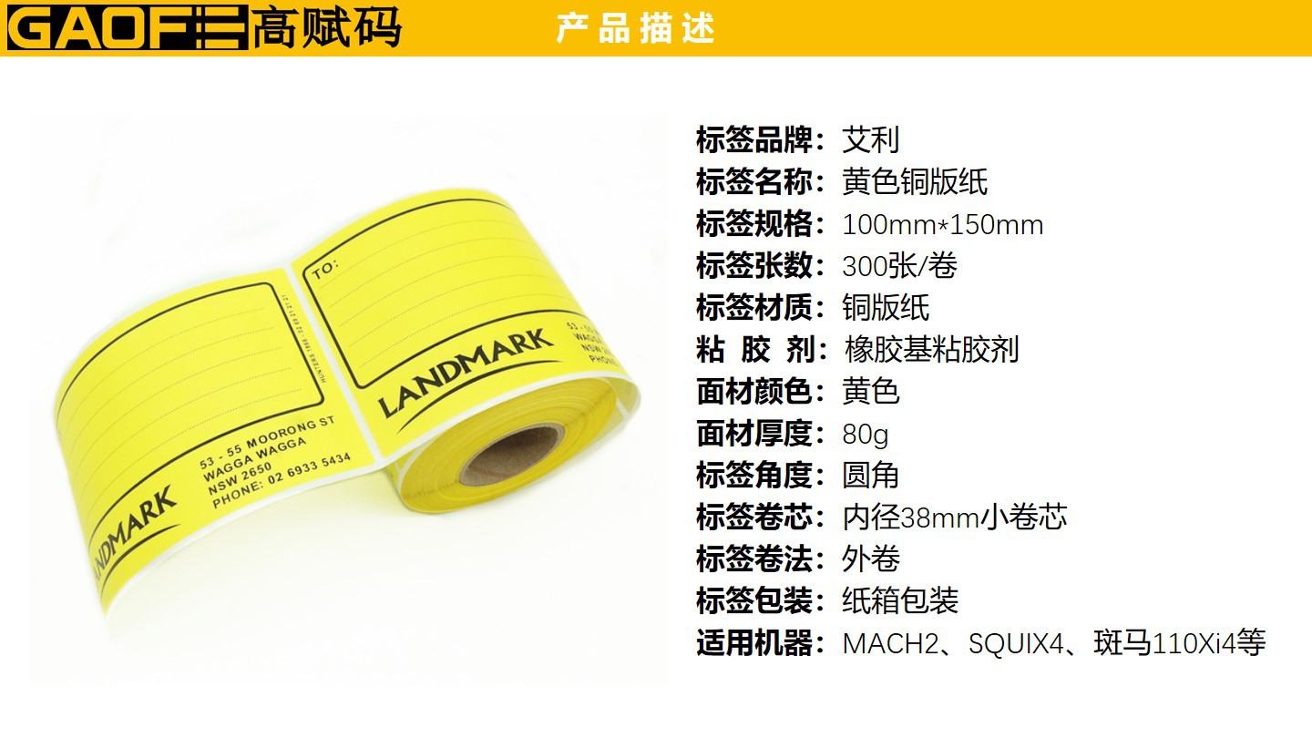 外箱紙標簽 100mm*150mm 黃色印刷標簽 強粘性 5209銅版紙-高賦碼