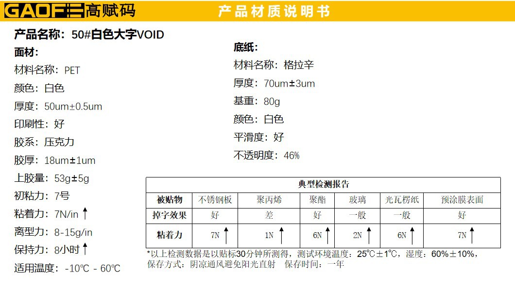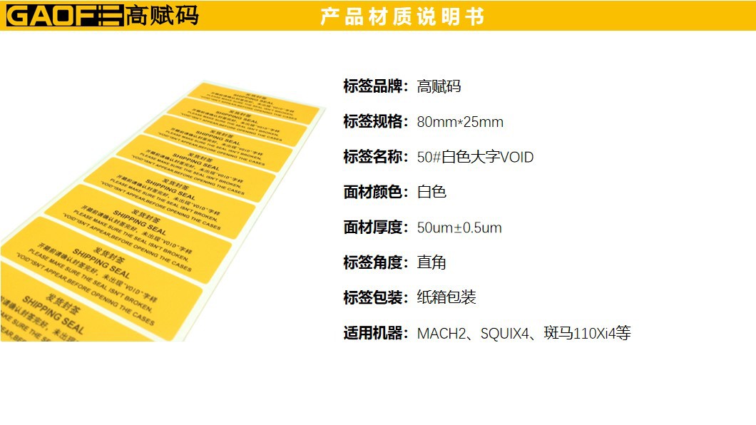 50#白色大字VOID 防偽標(biāo)簽 80MMx25MM-高賦碼