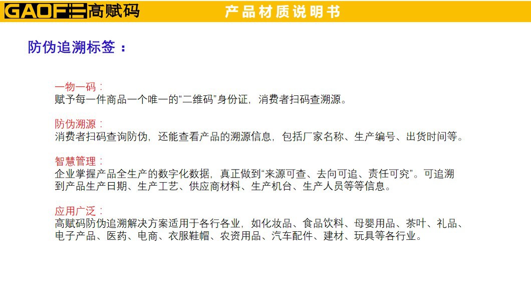 防偽追溯標簽 50#白色大字VOID 彩色涂層高光亮白-高賦碼