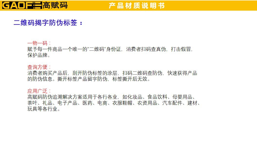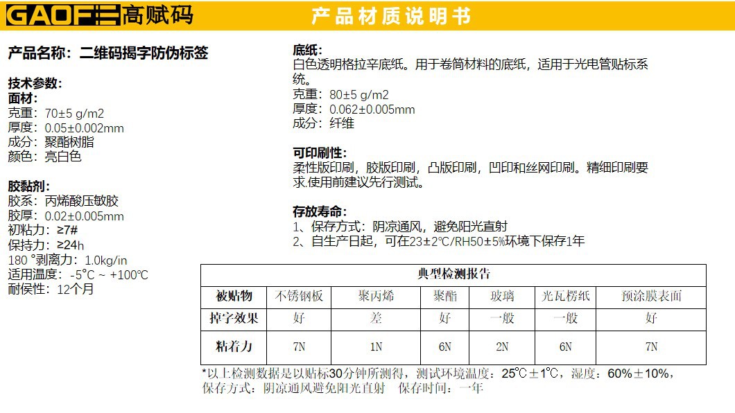 二維碼揭字防偽標(biāo)簽 50#白色大字VOID 彩色涂層高光亮白-高賦碼