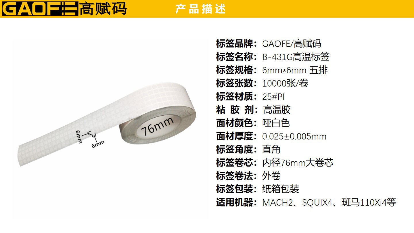 25#二維碼耐高溫標(biāo)簽 B-431G 6mm*6mm PCB板300度高溫標(biāo)簽-高賦碼