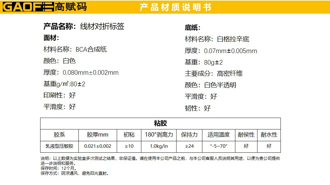 線材對折標簽 70mm*15mm BCA合成紙標簽 線纜標簽-高賦碼