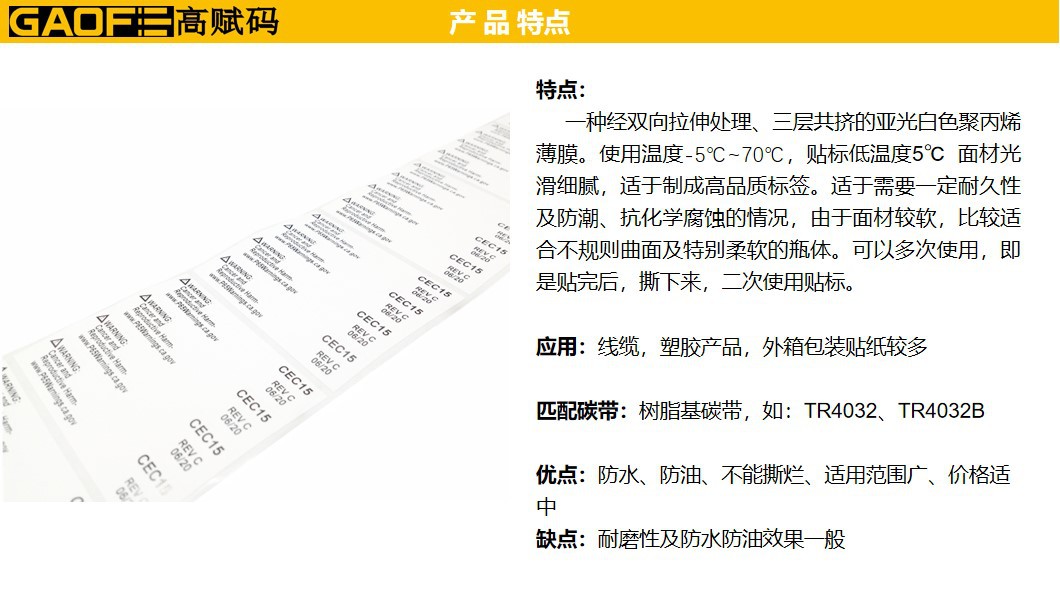 產(chǎn)品名稱:BCA合成紙