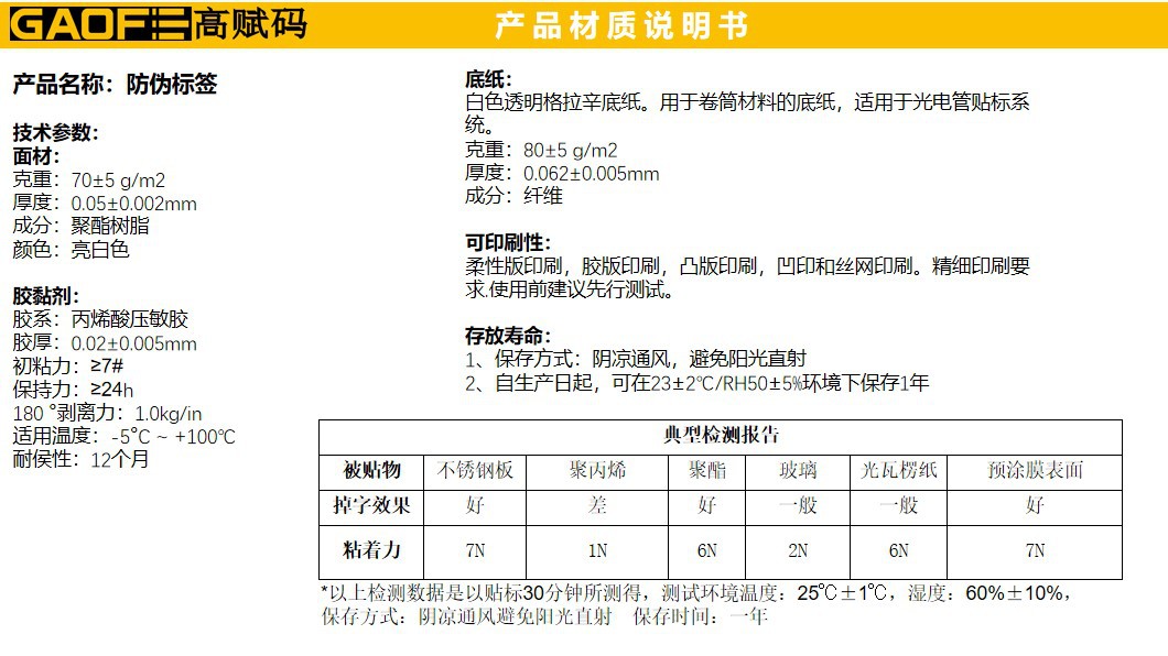 2、自生產(chǎn)日起,可在23±2℃/RH50±5%環(huán)境下保存1年