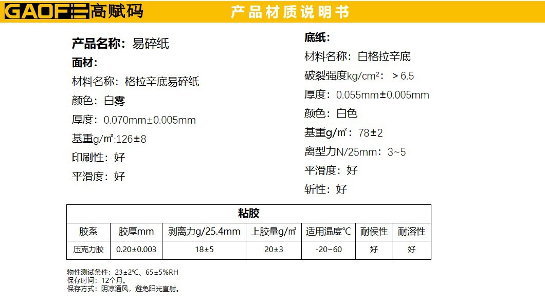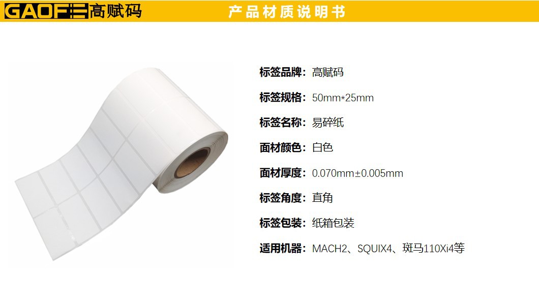 易碎紙標(biāo)簽 50mm*25mm 電子行業(yè) 高賦碼