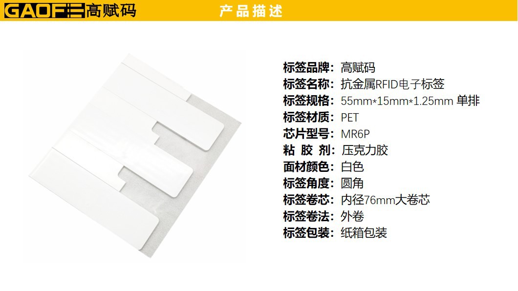 柔性抗金屬RFID標簽 MR6 55MMx15MMx1.25MM 電子標簽 高賦碼