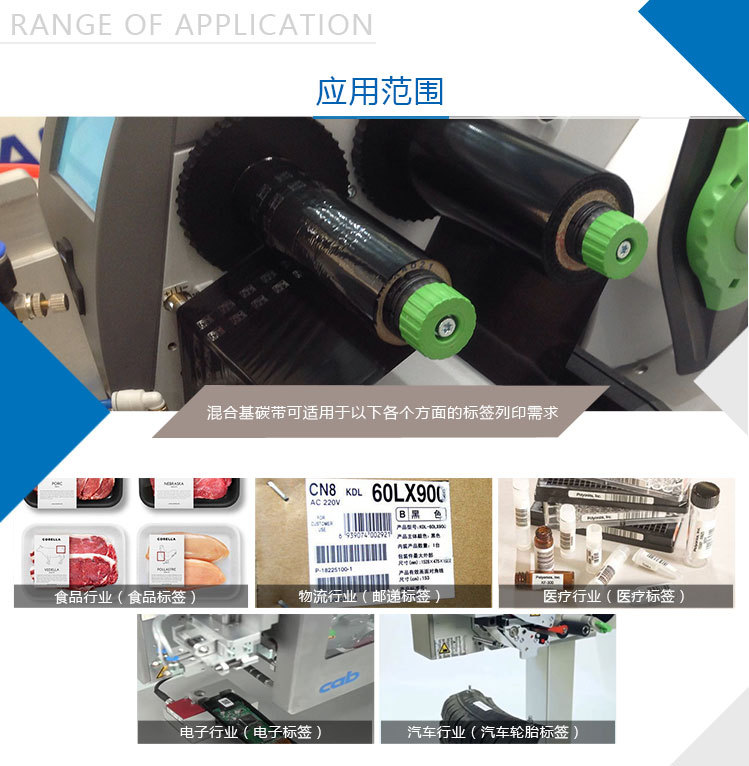 混合基碳帶品質(zhì)高、高速打印性能,優(yōu)異的耐磨擦、耐熱、耐腐蝕、耐久性能,耐磨能滿足各種苛刻環(huán)境要求,高敏感度,確保優(yōu)異的圖像打印效果,防靜電背涂層,有效保護(hù)打印頭。