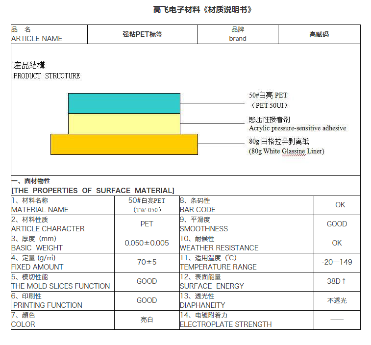 強(qiáng)粘PET標(biāo)簽