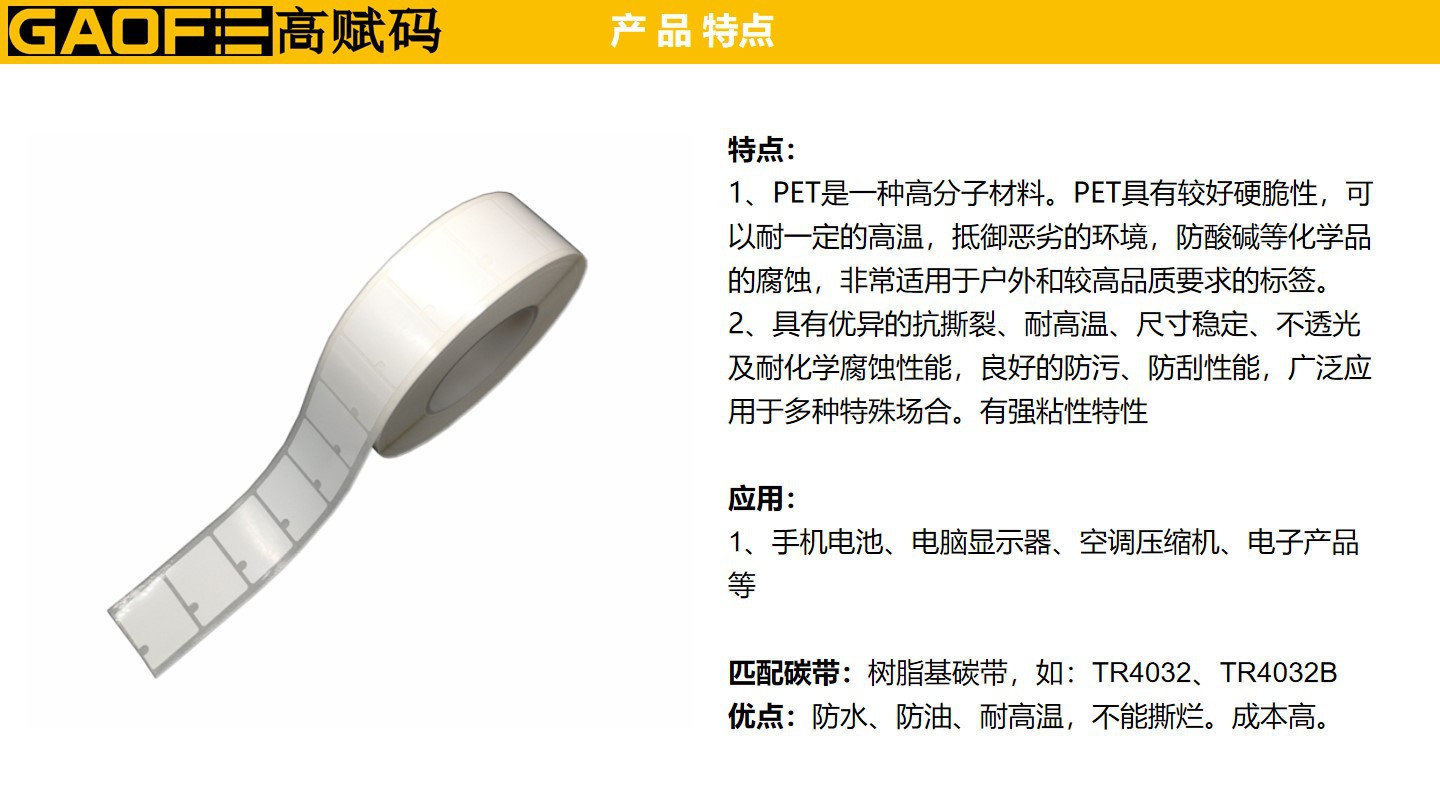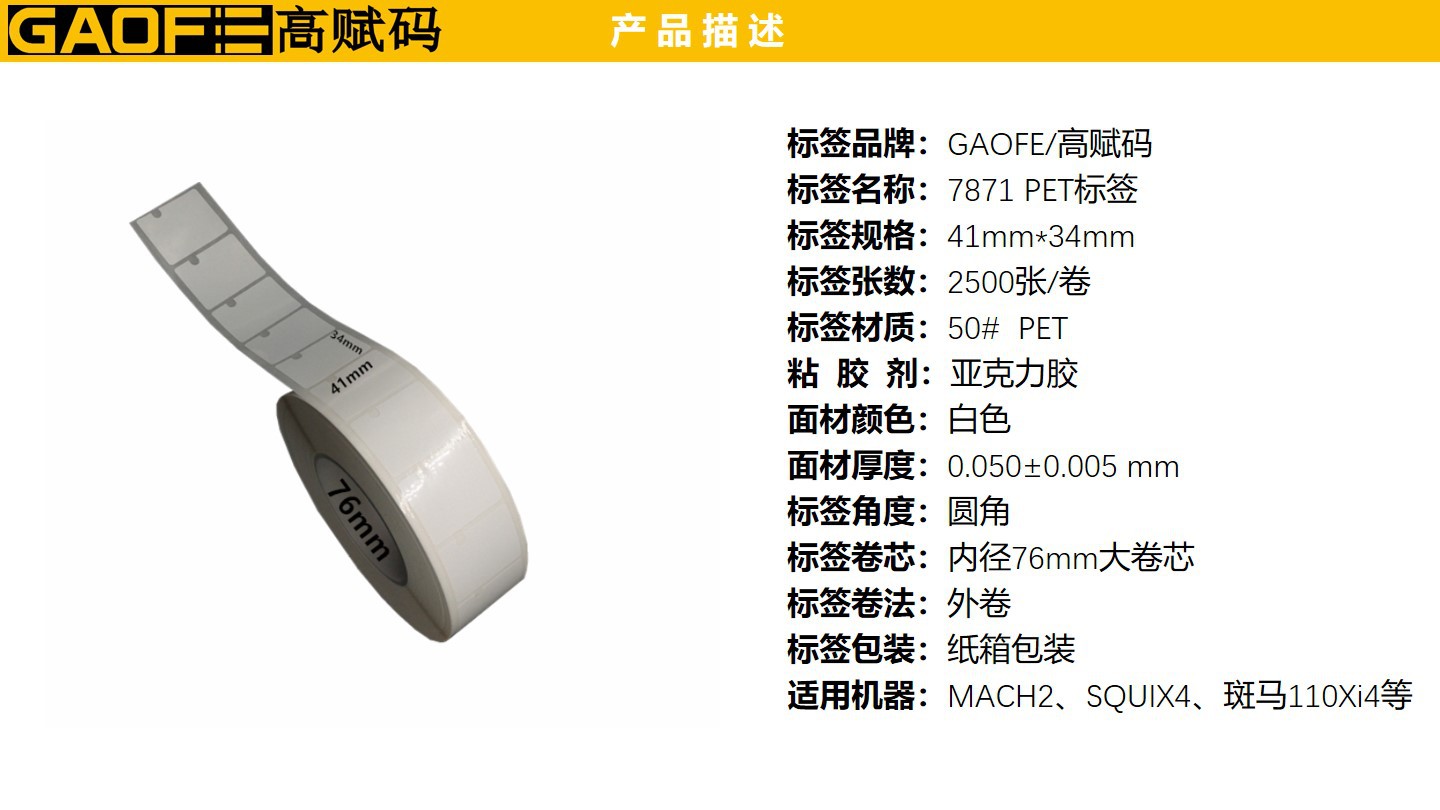 強粘PET貼紙 41mm*34mm PET標(biāo)簽 7871 超粘不干膠PET標(biāo)簽-高賦碼