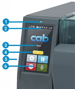 2 狀態(tài)列: 接收打印資料、記錄資料串流、碳帶將耗盡預(yù)警、SD 記憶卡 / U 盤、藍(lán)芽、WLAN 無(wú)線網(wǎng)絡(luò)、以太網(wǎng)絡(luò)、USB Slave 傳輸接口、時(shí)間