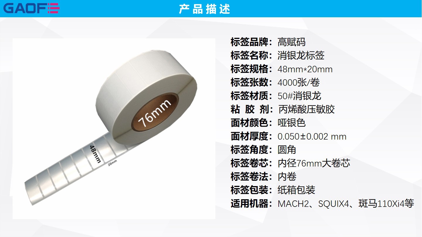 耐高溫100度標(biāo)簽 48mm*20mm 消銀龍標(biāo)簽 銀色標(biāo)簽 啞銀龍貼-高賦碼
