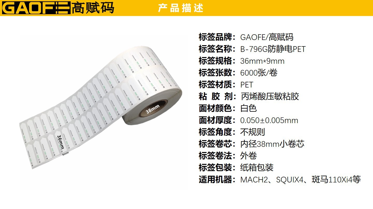 防靜電PET標(biāo)簽 36mm*9mm 雙色印刷防靜電PET標(biāo)簽 電池標(biāo)簽-高賦碼