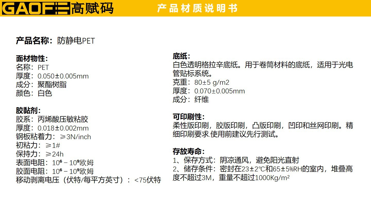 防靜電PET標(biāo)簽