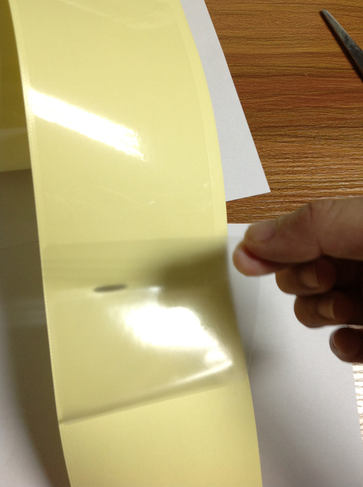 基材:25um(或50um)涂層處理聚酞亞胺薄膜,未經(jīng)涂層處理的聚酞亞胺不能滿足性能要求、涂層處理能更加地滿足工藝上所需的打印條碼性以及對(duì)材料顏色與光澤度的要求。