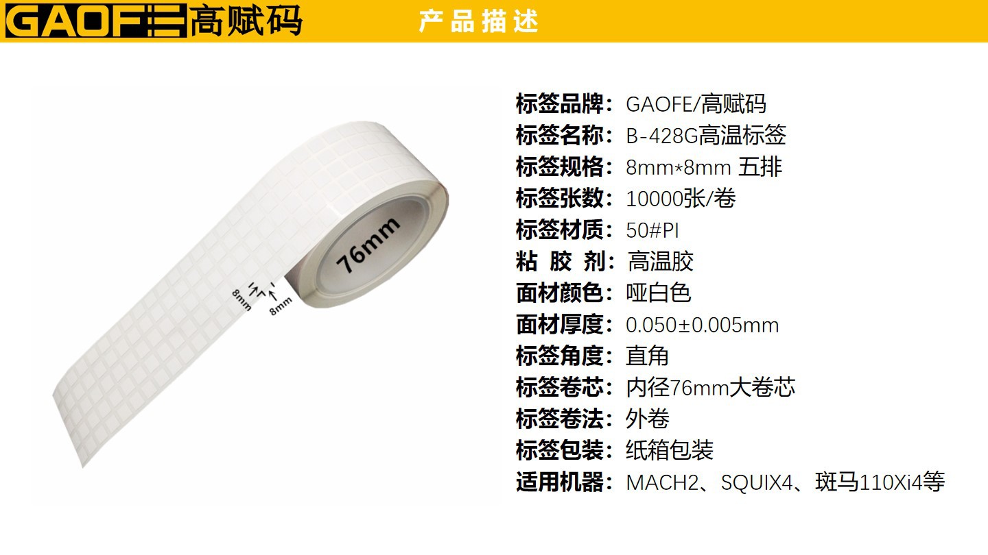 耐300度高溫貼紙 B-428G 8mm*8mm 二維碼高溫標(biāo)簽 SMT標(biāo)簽-高賦碼