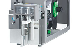 打印頭由兩支立柱加壓控制打印品質(zhì)。標(biāo)簽為置中輸出設(shè)計,因此不需對打印頭進(jìn)行設(shè)定及調(diào)整。