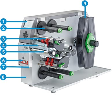因應(yīng)不同標(biāo)簽寬度不需重新調(diào)整打印頭。針對較窄及較薄的標(biāo)簽配有專用打印滾軸。