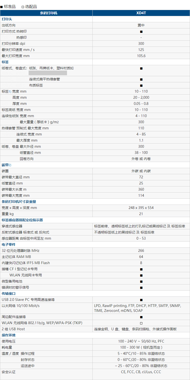 適用于條碼打印機(jī) XD4T 的配件