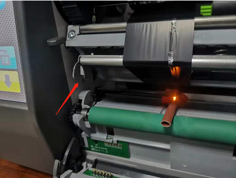 技術員:左邊卡勾斷了,造成壓力不夠,打印不清晰。