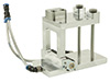 使用通用墊片可將標(biāo)簽壓貼于平坦的產(chǎn)品表面上。墊片上真空吸取標(biāo)簽的吸孔間隔為 5 mm 并覆蓋一層薄膜。并針對(duì)相對(duì)應(yīng)的標(biāo)簽尺寸使用打孔工具來開啟吸孔。隨機(jī)提供兩片更換薄膜。