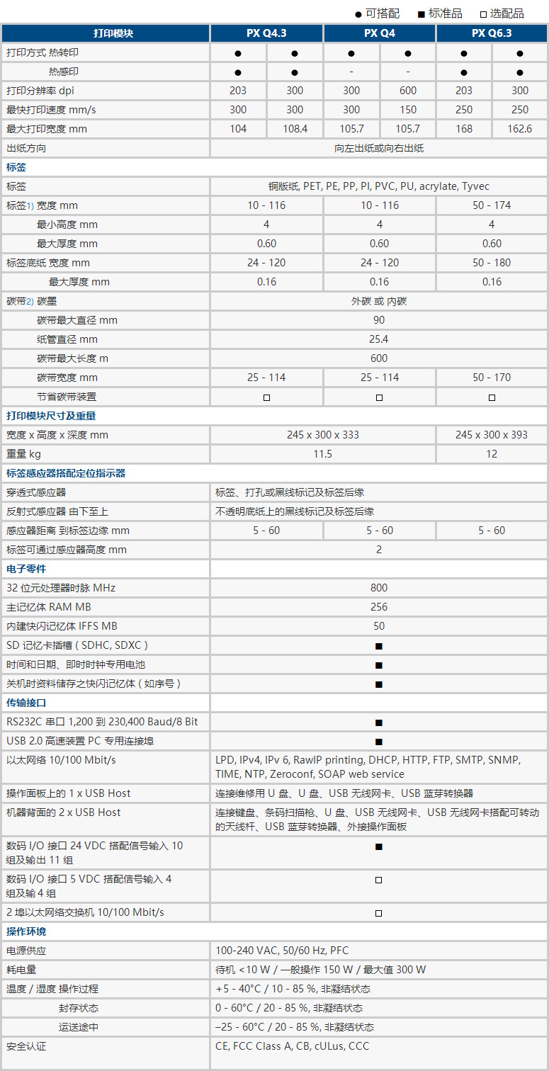 所有打印模塊皆提供向左及向右出紙的版本。使用 PX Q4 時(shí)可選用 300 及 600 dpi 的打印分辨率。PX Q4.3 及 PX Q6.3 提供了 203 及 300 dpi 的選擇。