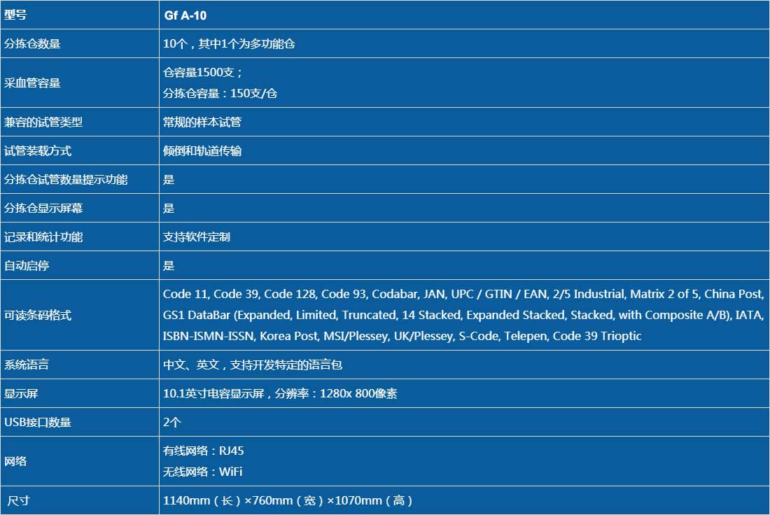 GF A-10 智能試管分揀機(jī) 高賦碼