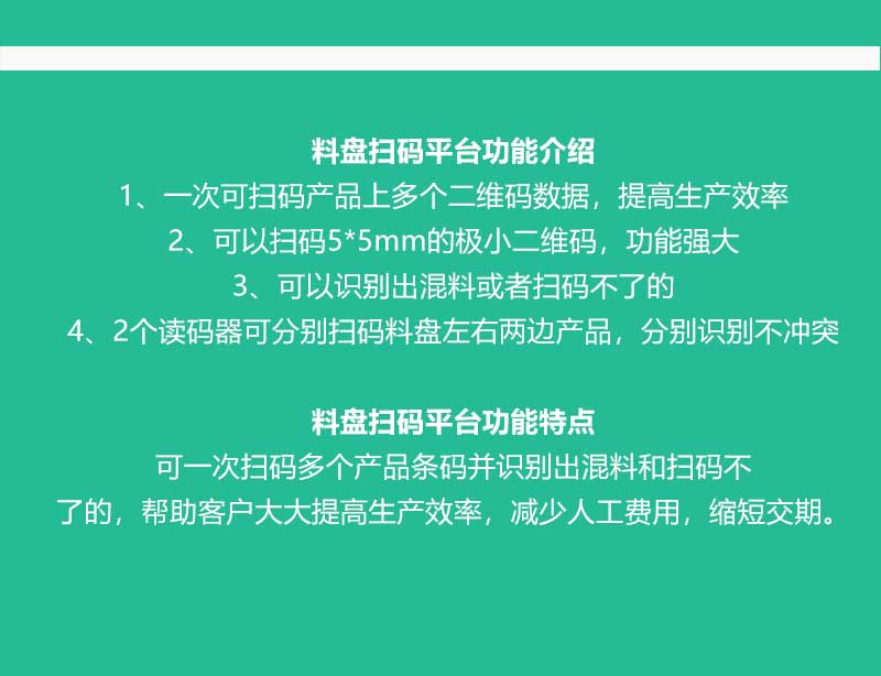 4、2個讀碼器可分別掃碼料盤左右兩邊產(chǎn)品,分別識別不沖突